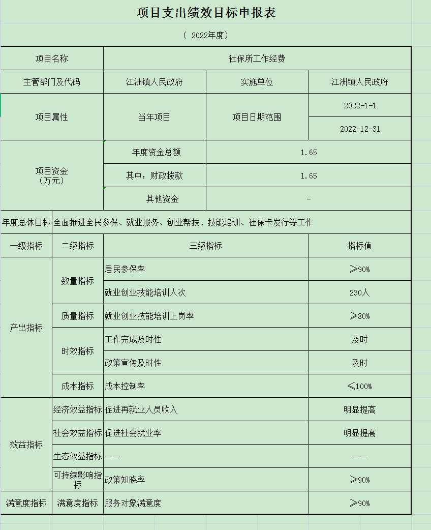 社会保障和就业工作经费绩效自评表