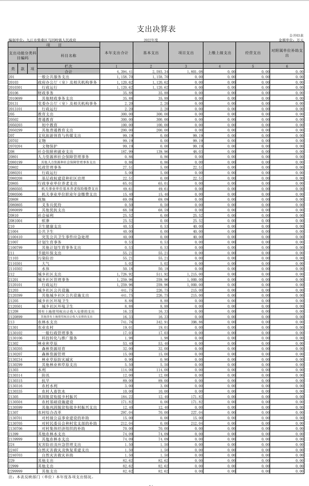 本部门2022年度支出总计4394.41万元,其中本年支出合计4394.41万元,较2021年减少3077.89万元,下降41.19%,主要原因是:项目支出预算调整幅度偏大2022年新农村建设、公墓建设项目已完工,资金减少;年末结转和结余0万元,较2021年减少794.51万元,下降100%,主要原因是:按要求加快支出进度,减少年末结转和结余。