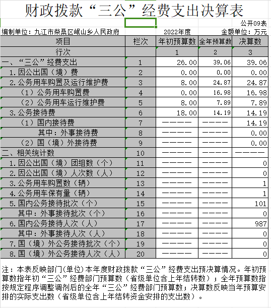 本部门2022年度财政拨款“三公”经费支出全年预算数为39.06万元,决算数为39.06万元,完成全年预算的100%,决算数较2021年减少1.92万元,下降4.92%,其中: