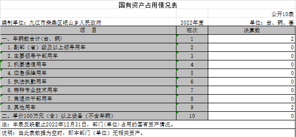 截止2022年12月31日,本部门国有资产占用情况见公开10表《国有资产占用情况表》。其中车辆中的其他用车2辆主要是公务用车。