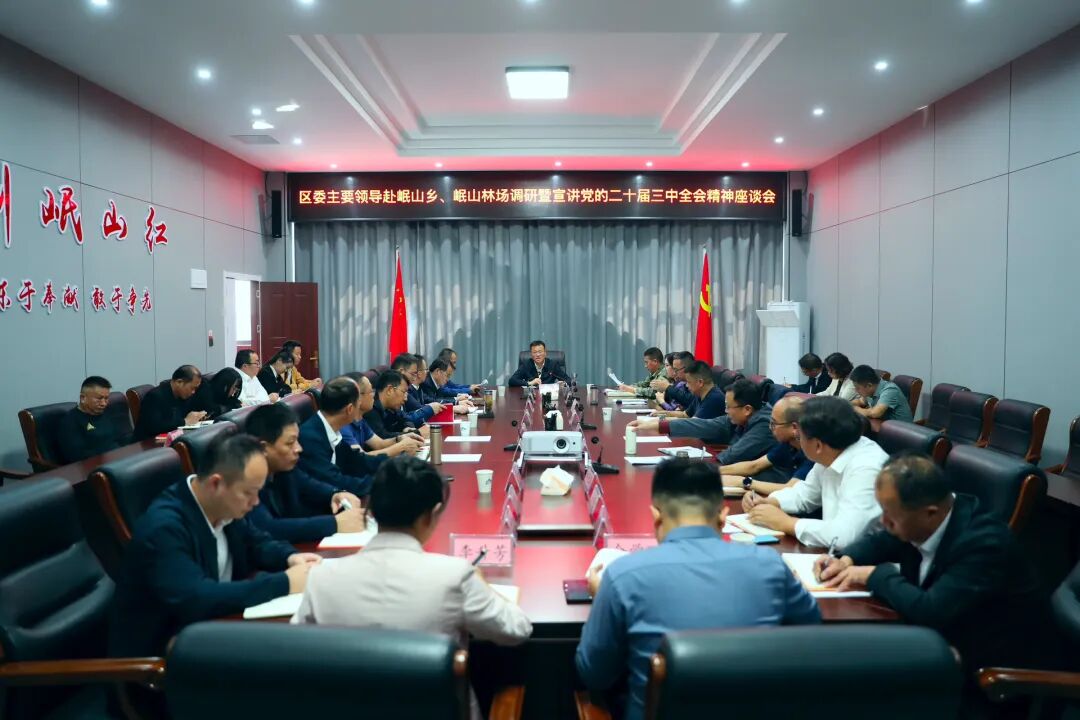 10月8日,区委书记盛炜到岷山乡、岷山林场宣讲党的二十届三中全会精神并开展调研。他强调,要深入学习贯彻党的二十届三中全会精神,紧密结合自身实际,找准贯彻落实全会精神的切入点和着力点,将学习成果转化为推动工作的强大动力和实际成效。区委常委、人武部部长赵青奎,区委常委、组织部部长杜方乔,副区长吴笋一同调研。