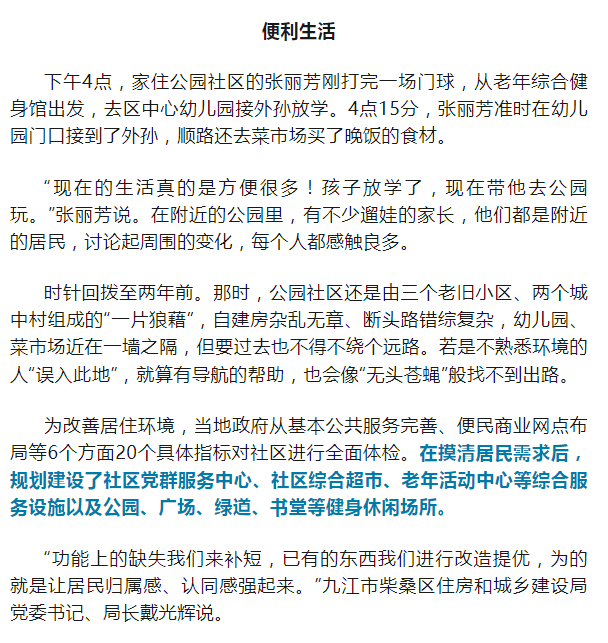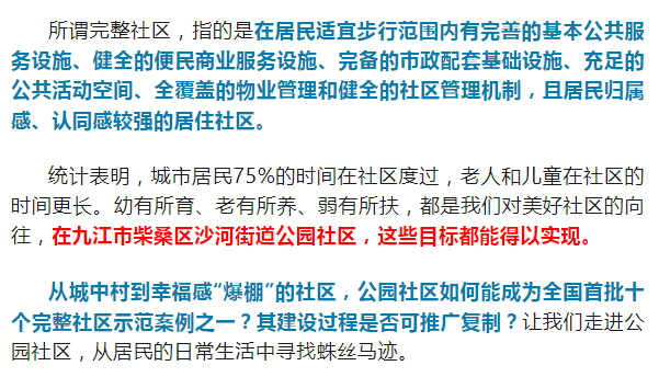 2月17日,省委改革办通告30个2023年度江西省全面深化改革优秀案例,九江市柴桑区探索推进完整社区建设试点名列其中。何为完整社区?完整社区怎么建?让我们走进九江柴桑区寻找答案。