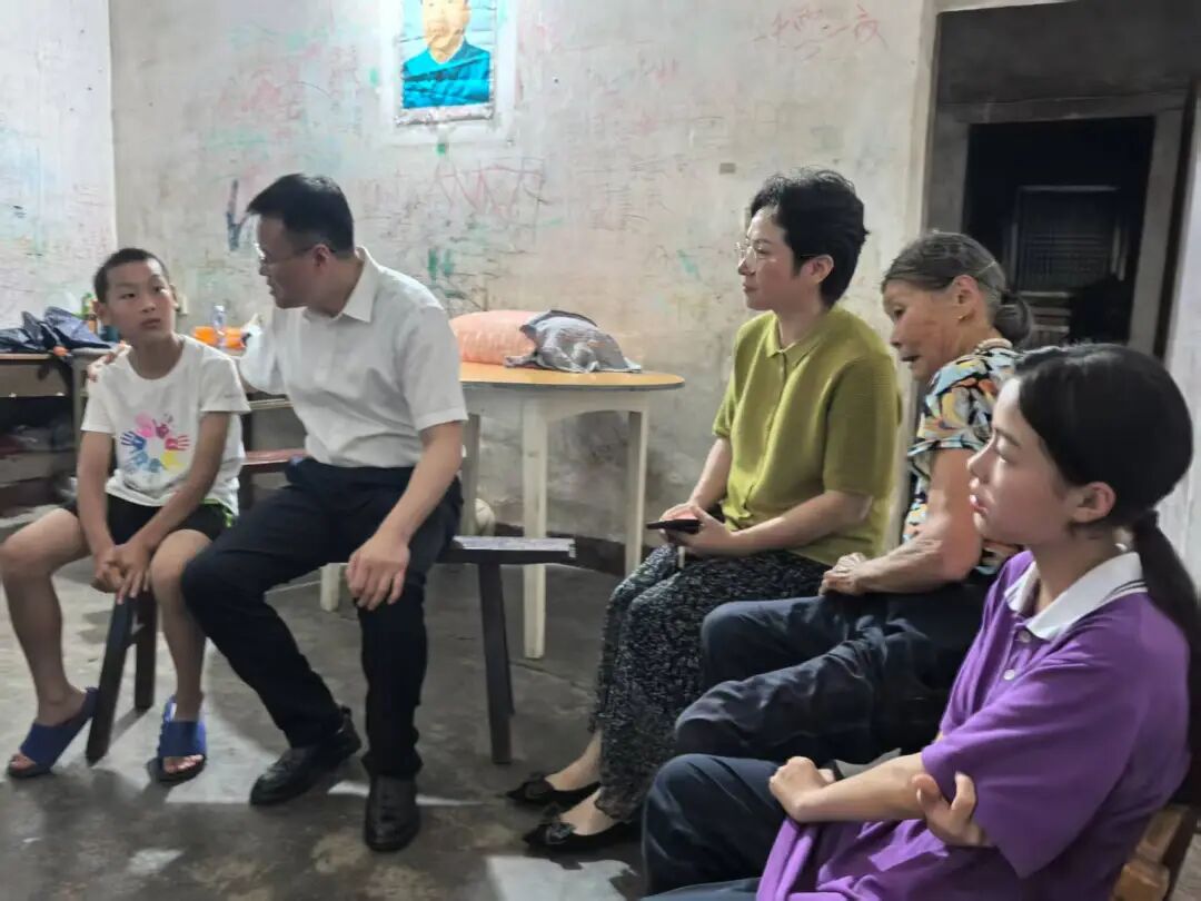 盛炜冒雨察看李金凤老人家屋里屋外的情况,详细了解一家人的生活状况,得知李金凤老人独自带两个孙儿一起生活,还存在不少困难时,当即要求街道、社区要尽快帮助解决。