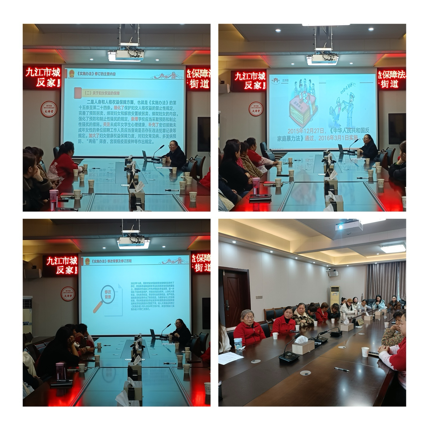 11月25日,柴桑区妇联在狮子街道开展九江市城乡女性“法律明白人”培训暨反家庭暴力法、妇女权益保障法宣讲活动,这是柴桑区妇联在“国际反家庭暴力日”之际在全区范围开展的反对家庭暴力宣传周启动活动,此次活动也是《江西省实施<中华人民共和国妇女权益保障法>办法》施行以来,柴桑区妇联在全区范围开展的首场《实施办法》宣讲活动,通过此次宣讲活动,拉开全区《实施办法》普法宣传活动的序幕。活动邀请了江西惟民律师事务所律师林春秀宣讲,狮子街道社区妇联主席、妇女小组长及周边妇女群众参加活动。