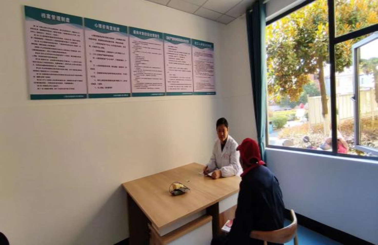 由卫生院医技楼一楼和二楼共9间房及楼后操场改建而成。分为康复活动区、阅读室、职业康复区、心理咨询室、户外活动区、日间休息室6个区域。
