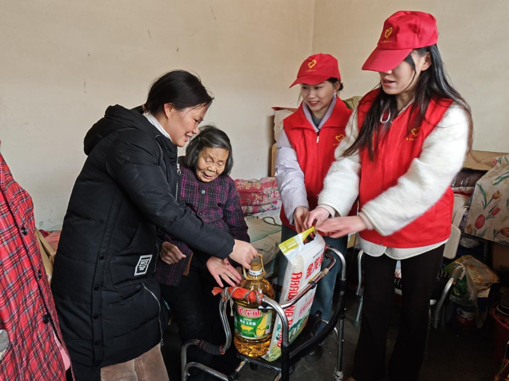 活动中,志愿者们还为老人们表演了精心准备的文艺节目。欢快的歌声、优美的舞蹈,让老人们脸上洋溢着幸福的笑容,现场气氛温馨而热烈。对于行动不便的老人,志愿者们带着慰问品逐一上门,将温暖送到床边。今年79岁的杨奶奶因腿脚不便长期卧床,看到志愿者们上门慰问,她激动地说:“谢谢你们来看我,还带了这么多东西,真是太贴心了!”