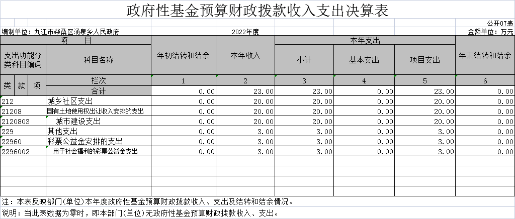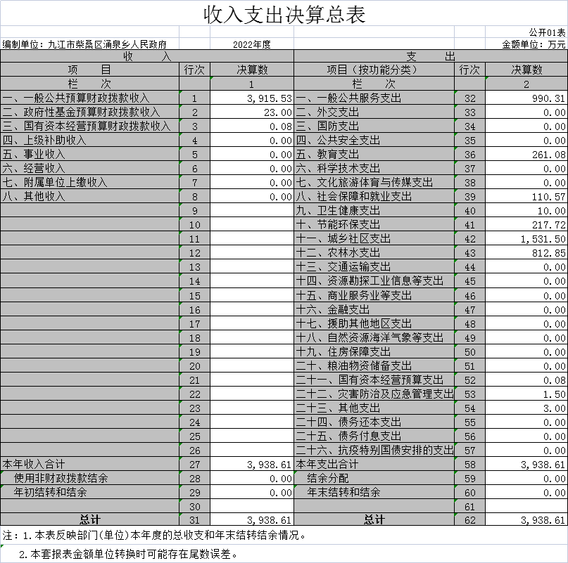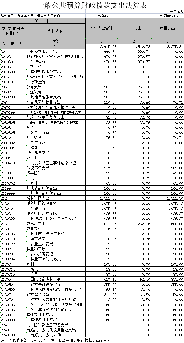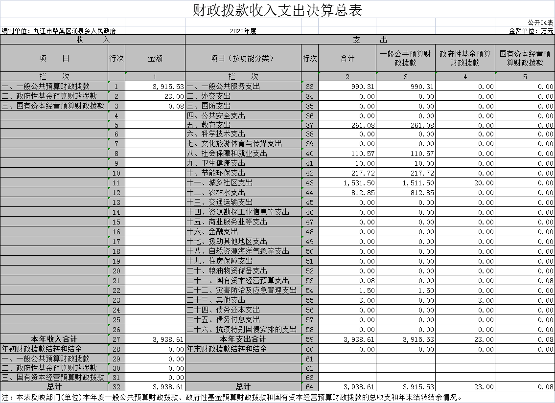 九江市柴桑区涌泉乡人民政府2022年度部门决算公开