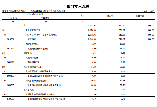 2024年涌泉乡人民政府支出预算总额为支出预算总额为2223.63万元,较上年预算安排增加1584.88万元;其中: