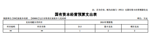 2024年本部门共有预算单位1个,包括:九江市柴桑区涌泉乡人民政府。