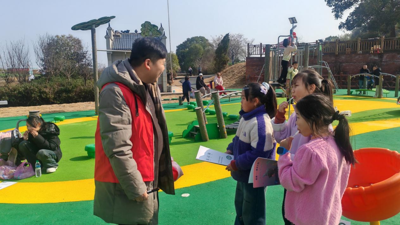2月2日正值寒假,青栖湖迎来了许多前来亲近自然的市民和青少年。活动现场,工作人员通过设立宣传展板、悬挂横幅、发放宣传册、现场讲解等方式,生动展示了湿地的生态功能、文化价值以及当地传统知识在湿地保护中的重要作用。护鸟员结合湖区常见的候鸟种类,向参与者介绍了鸟类的生活习性以及湿地与鸟类保护的关系,吸引了不少孩子驻足聆听。