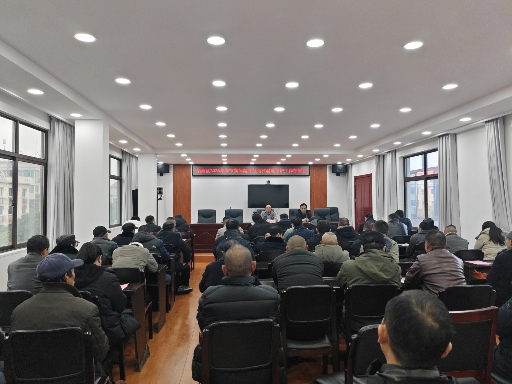 (饶少锋)2026年2月10日下午,柴桑区林业局组织召开2026年春节期间全区鸟类等野生动物保护工作会议,对相关工作进行再部署、再动员、再推进。区林业局局长段训锋出席会议并讲话。全区各乡镇林管站站长及所有护鸟员参加会议。