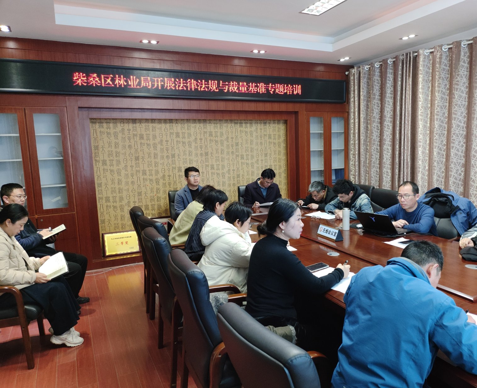2026是“十五五”开局之年,柴桑区林业局贯彻落实省、市林业局工作部署,在区委区政府的坚强领导下,进一步深化林权改革,加强林业基层建设提升执法水平。2月27日,该局组织局10名有执法证的干部开展行政执法能力提升培训,副局长胡红主持,邀请局法律顾问王杨律师到会指导,森林资源管理股负责人杜文进行授课。