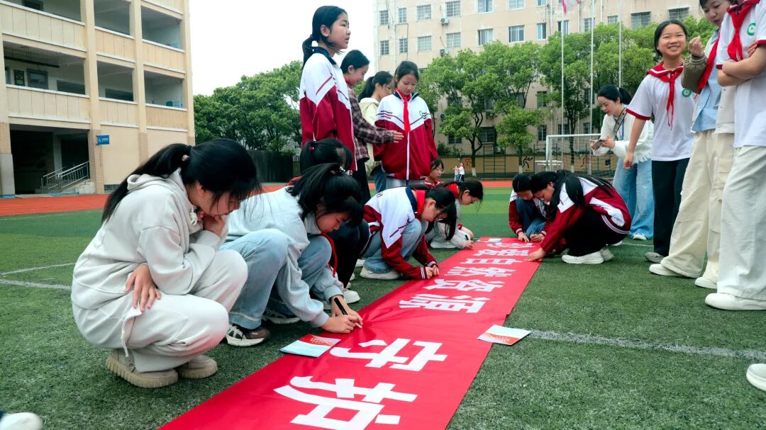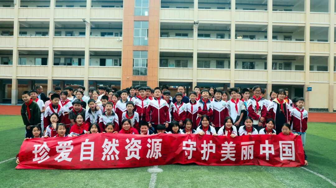 宣讲后,同学们在“珍爱自然资源 守护美丽中国”主题横幅上郑重签名承诺,并围绕宣传展板开展“中国之最·人文地理”知识抢答。趣味互动中,环保理念悄然植入童心,进一步激发了青少年关爱地球、保护自然的热情。