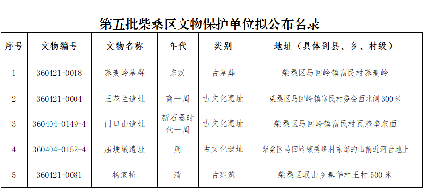 附件:《第五批柴桑区文物保护单位拟公布名录》