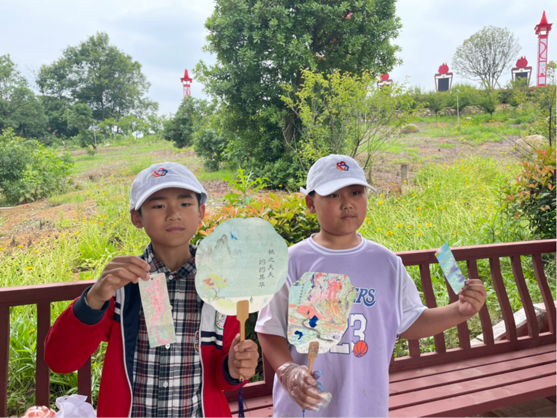 活动中,孩子们在志愿者老师的指导下体验了传统漆扇制作。调漆、绘纹、晾晒......一把把绘有独特花纹的漆扇在孩子们手中诞生。同学们开心地展示着自己的作品,这一活动让孩子们在动手实践中感受传统文化的魅力。