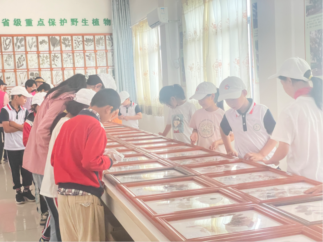 活动最后一站来到九江市森林植物标本馆。同学们在谭爷爷的带领下开启了一场生动的自然科普课。活动中,谭爷爷向孩子们展示了馆内珍藏的几千余份动植物标本,讲述标本背后的故事,以及环境保护的重要性。孩子们透过玻璃窗观察植物标本的细节,惊叹于大自然的无穷魅力。在标本制作工坊,同学们屏息凝神,近距离观看工作人员如何用专业工具固定、塑形标本,感受科学与艺术的完美结合。此次植物标本馆之旅为孩子们播下了绿色环保的种子,也让这次研学之旅在探索与思考中圆满收官。