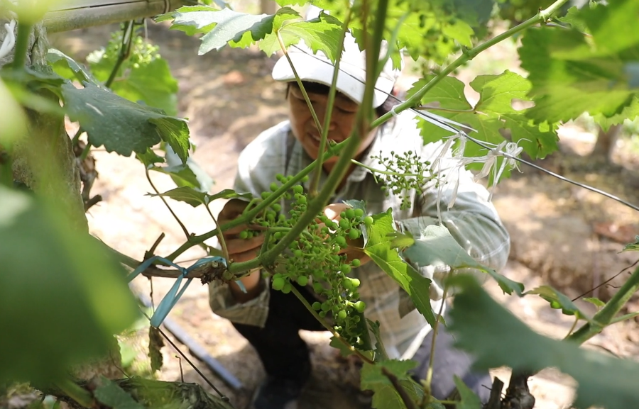 柴桑区新塘乡:葡萄疏果忙,喜待丰收时!