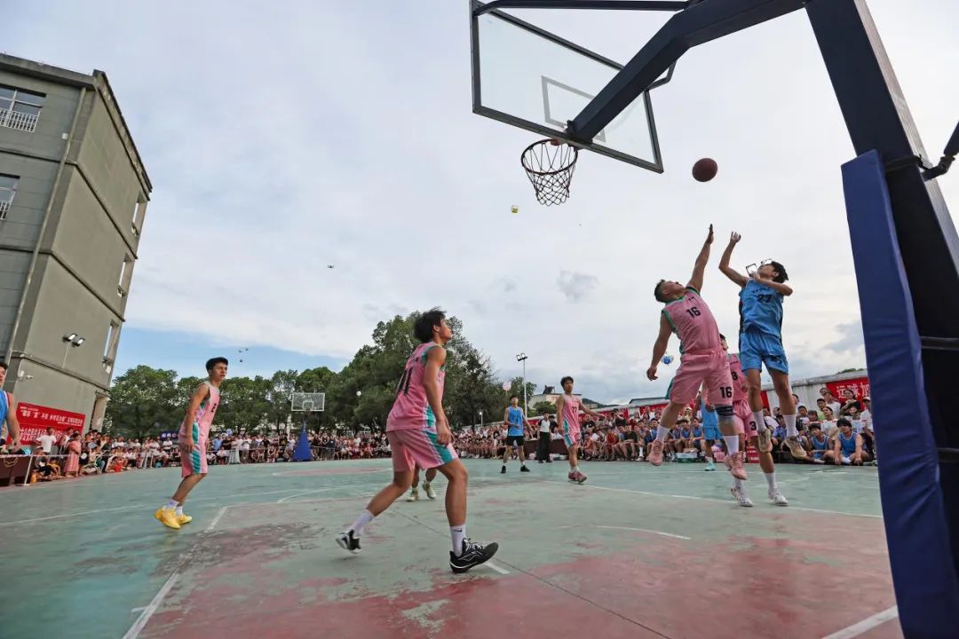 随后,在激昂的音乐声中,篮球赛开幕式盛大开启。来自各村(社区)的8支参赛队伍组成整齐方阵,依次有序入场。运动员们步伐矫健、精神抖擞,脸上满是自信与期待。18:30分随着裁判哨声响起,首场比赛正式开始,双方队员迅速进入状态,展开激烈角逐,他们灵活运球、巧妙配合,时而发起攻击、时而严密防守,展现了良好竞技状态和团队拼搏精神。现场观众纷纷举起手机,定格这一精彩瞬间,并为自己支持的队伍呐喊助威,欢呼声与快门声交织在一起,现场气氛热情高涨。