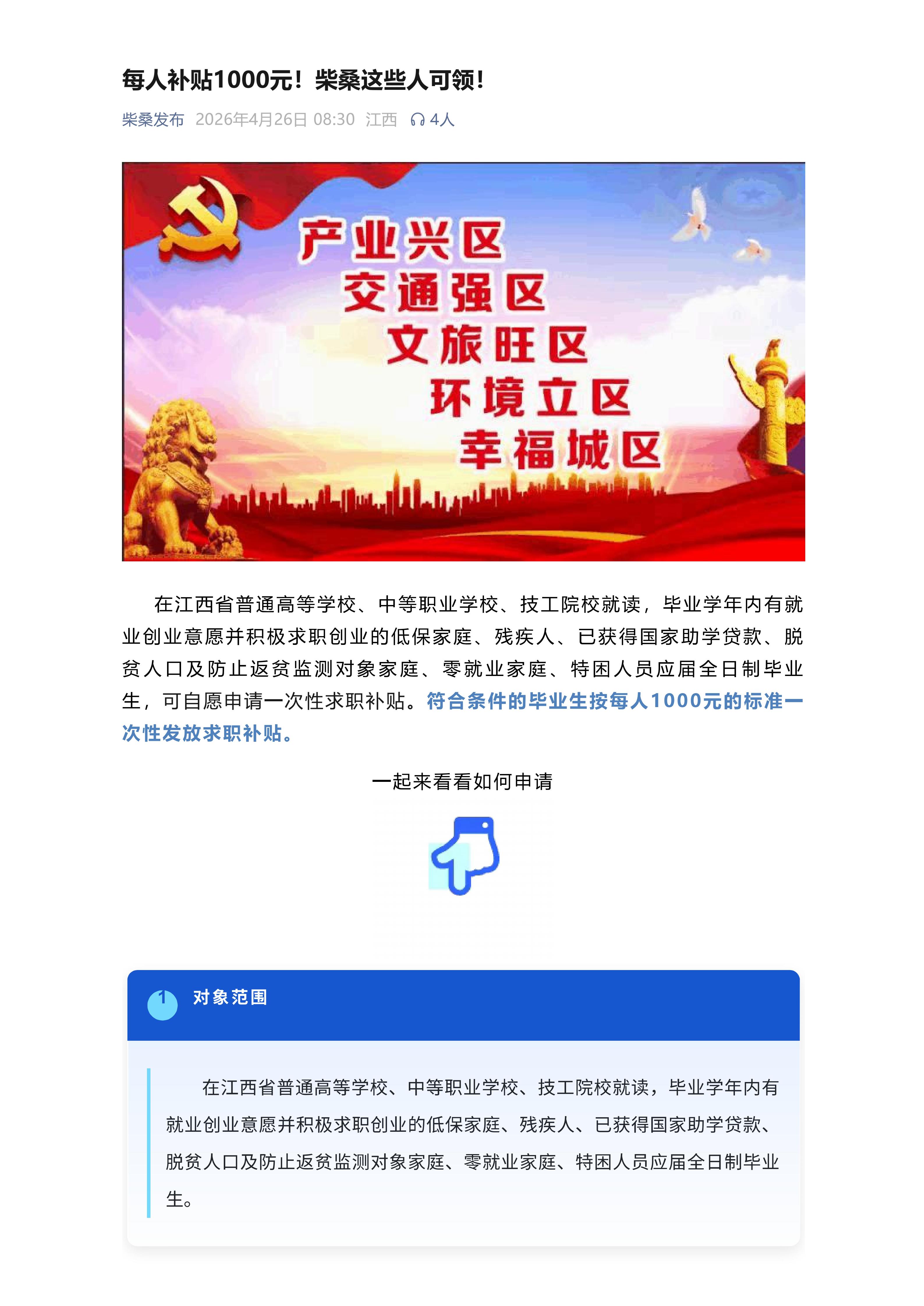 每人补贴1000元!柴桑这些人可领!