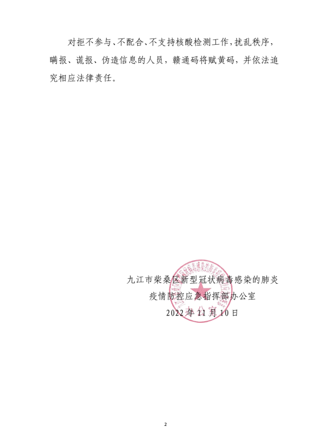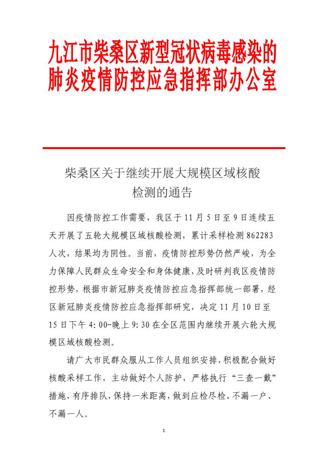 柴桑区关于继续开展大规模区域核酸检测的通告