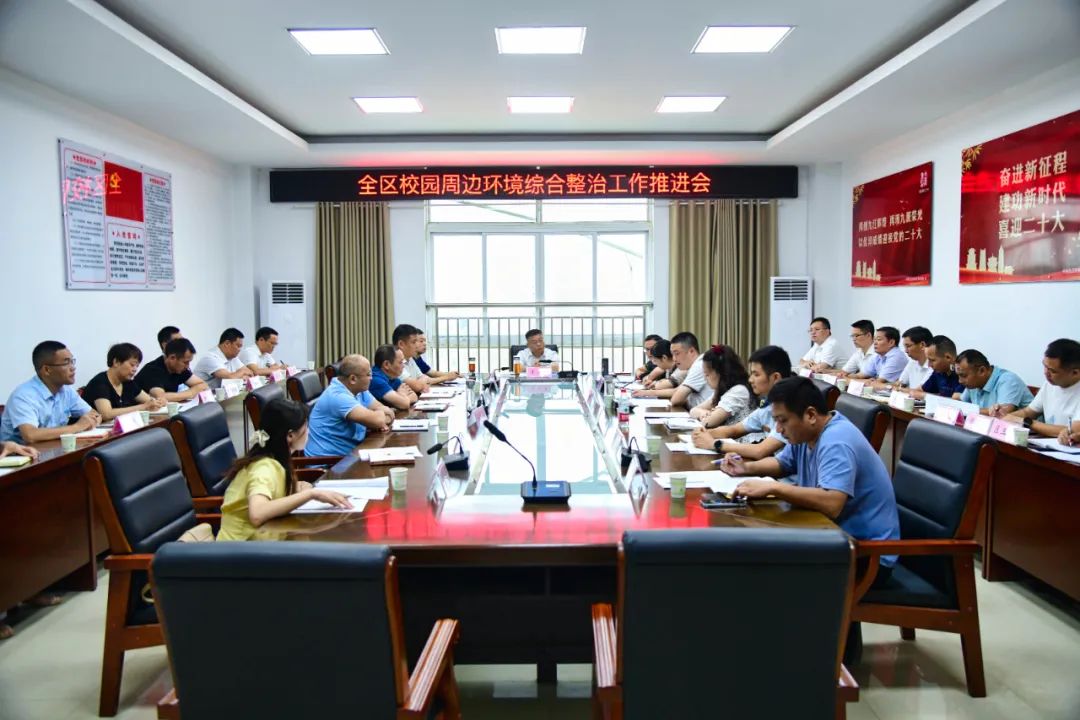 为进一步优化校园周边秩序,营造安全稳定的教书育人环境,9月9日上午,全区校园周边环境综合整治工作推进会在区委宣传部召开,区委常委、宣传部部长李三荣,区政府副区长聂晓峰出席会议并讲话,区直有关单位分管负责同志,城区及部分乡村中小学、幼儿园负责人参加了会议,会议由区教体局党委书记卢沙沙主持。会上,卢沙沙首先通报了全区各校(园)秋季开学初排查的校园周边隐患。各相关单位就校园周边“文明创建、校园维稳、食品安全、流动摊贩、乱停乱放、交通秩序、校园周边非法出版物及娱乐场所整治”等工作情况作说明。聂晓峰就校园周边环境存在的问题进行了梳理分析,并提出了整改措施和要求。强调各责任单位对于校园周边的动态问题、明显问题和常态化问题必须高度重视,对涉及的问题要限时逐一整改;区教体局发挥好牵头作用,结合当前校园安全工作,加强督导检查,确保已发现的问题及时整改到位。李三荣在总结讲话中指出,教育关系到千家万户,各有关部门、学校要进一步统一思想认识,主动担负起自身责任,紧盯群众诉求,突出整治重点,加强协调配合,强化督导问责,努力营造师生舒心、家长放心、社会安心的良好教育氛围。各单位对已排查出的问题要全面整改,定期开展日常整治、专项整治、综合整治,建立长效机制,推动各项工作措施落细落实,确保校园周边环境长治久安。