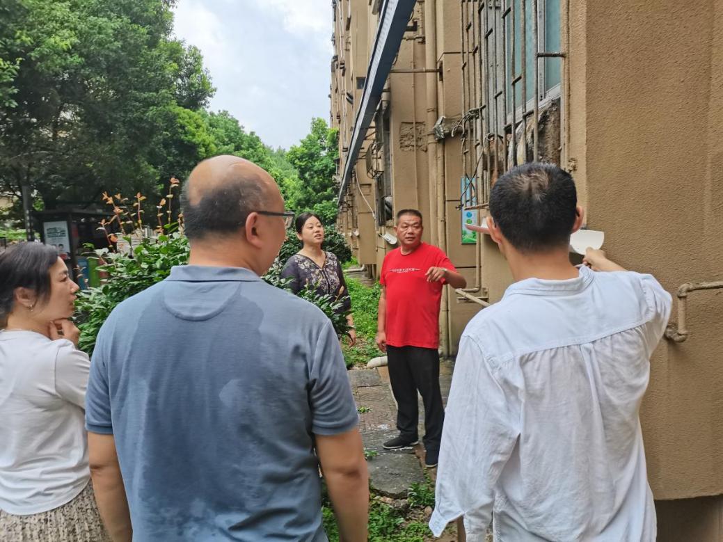 庐山北路社区干部及网格员在调查后详细记录了油污出现的范围和程度等问题,在会上通过和居民进行沟通讨论确定了油污清理的方案和措施。