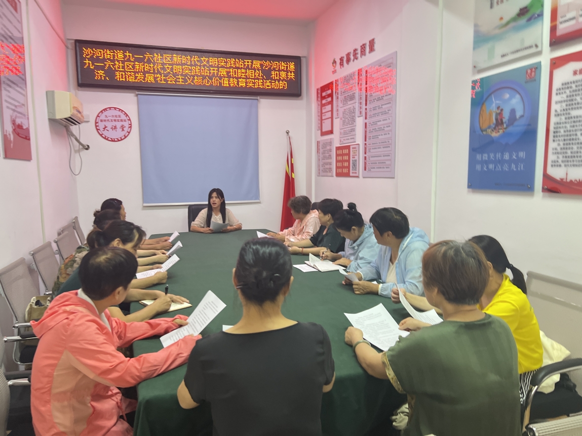 2024年7月11日,九江市柴桑区沙河街道九一六社区新时代文明实践站开展“和睦相处、和衷共济、和谐发展”社会主义核心价值观教育实践活动