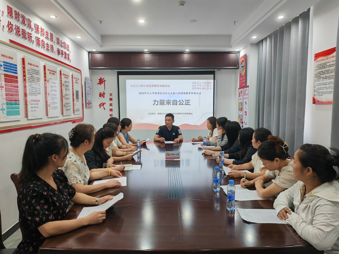 2024年7月19日,九江市柴桑区沙河街道瑞景社区新时代文明实践站开展“力量来自公正”社会主义核心价值观教育实践活动
