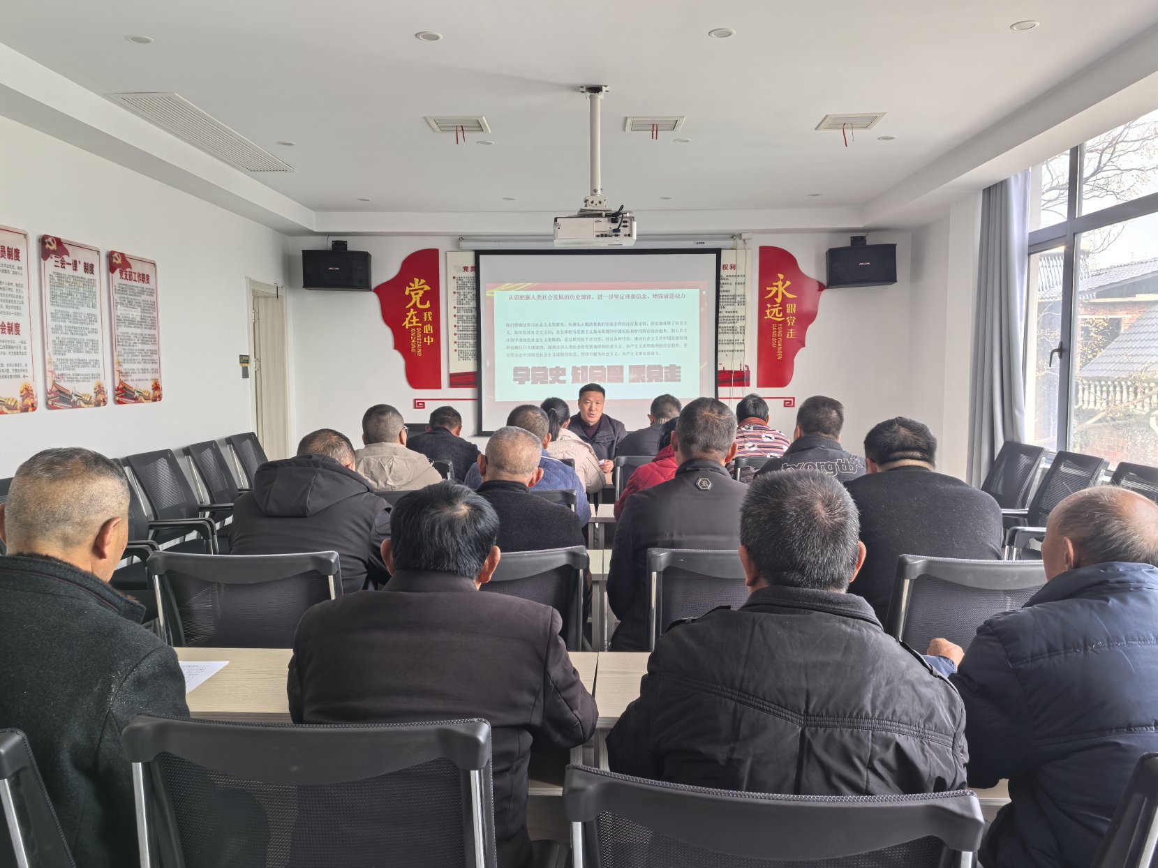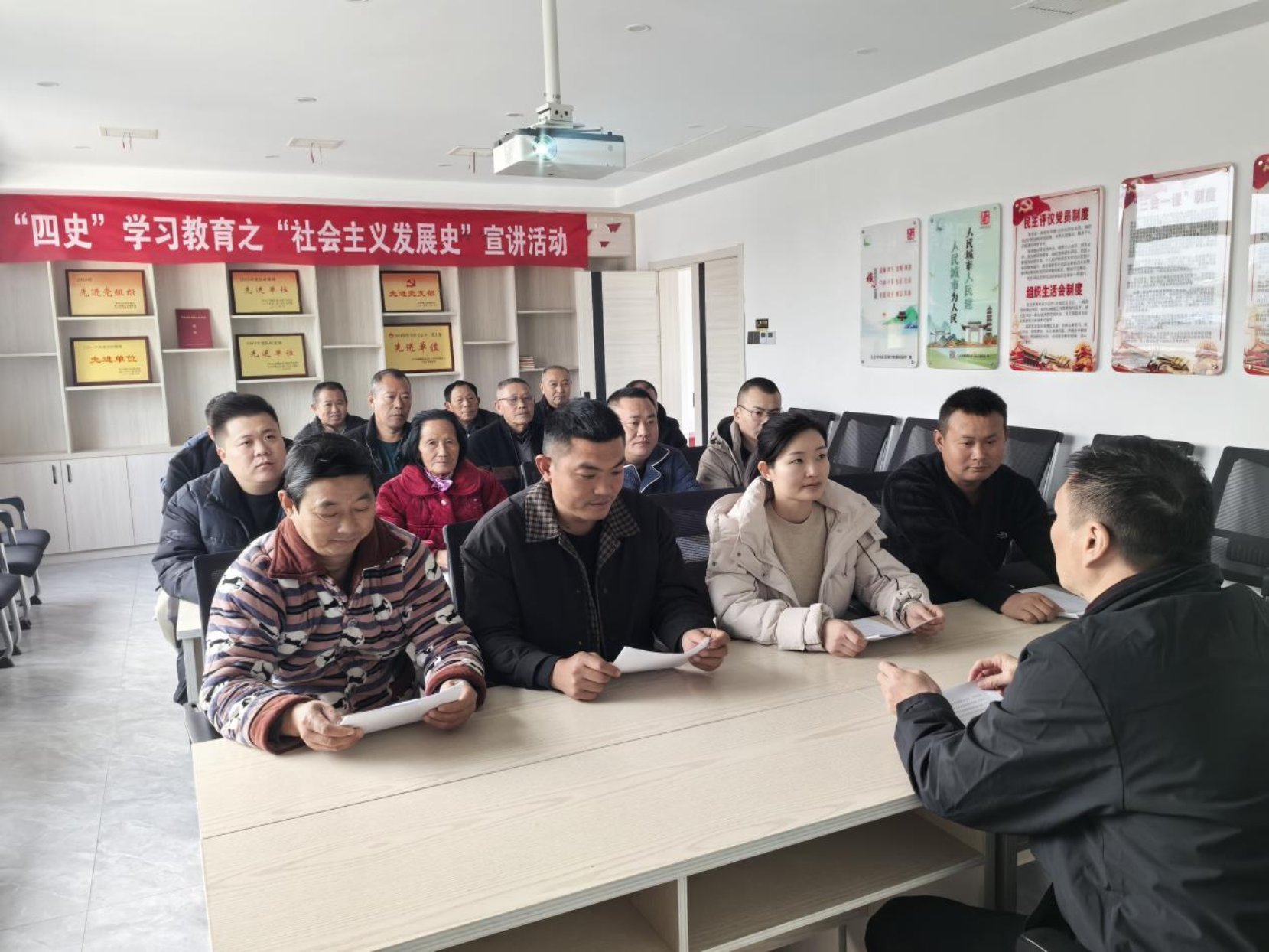 为持续深化以党史为重点的“四史”学习教育,推动社会主义发展史的学习教育,引导广大村民正确认识和理解形势政策,自觉在思想上政治上行动上同党中央保持高度一致。12月11日,柴桑区城门街道联盟村开展“四史”学习教育之“社会主义发展史”宣讲活动,本次会议由联盟村党支部书记张贤文同志主持,辖区内村民积极踊跃参加。