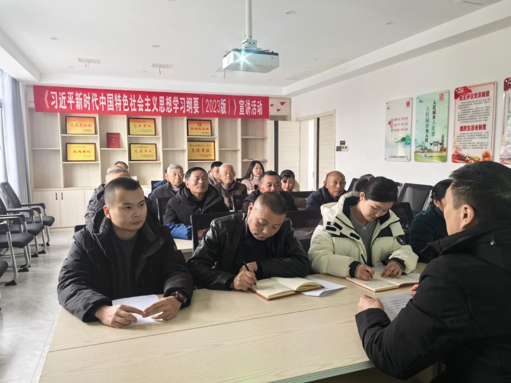 为进一步深入学习贯彻习近平新时代中国特色社会主义思想,把握好马克思主义在新时代下被赋予的新使命、新内涵。12月15日,柴桑区城门街道联盟村召开《习近平新时代中国特色社会主义思想学习纲要(2023版)》宣讲活动。本次会议由联盟村党支部书记张贤文同志主持,辖区内党员积极踊跃参加。
