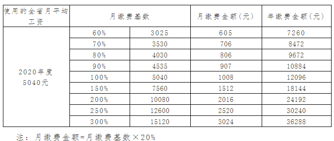 2021年11月16日,省人社厅和财政厅下发通知,规定了参加城镇企业职工基本养老保险的无雇工的个体工商户和灵活就业人员,2021年缴费档次为以下10档: