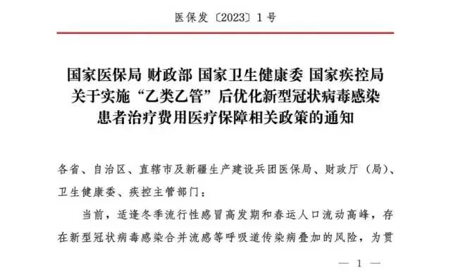 据国家医保局微信公众号7日消息,为贯彻落实党中央、国务院决策部署,平稳有序实施新型冠状病毒感染“乙类乙管”,国务院应对新型冠状病毒感染疫情联防联控机制综合组陆续印发了《关于对新型冠状病毒感染实施“乙类乙管”的总体方案》及配套方案。为做好新型冠状病毒感染实施“乙类乙管”后新型冠状病毒感染患者治疗费用医疗保障工作,国家医保局、财政部、国家卫生健康委、国家疾控局联合印发了《关于实施“乙类乙管”后优化新型冠状病毒感染患者治疗费用医疗保障相关政策的通知》,相关政策自新型冠状病毒感染(简称“新冠”)实施“乙类乙管”之日起施行,现将主要内容解读如下。