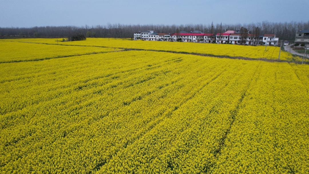 微风轻拂,黄花簌簌,长江堤旁满眼金海与蓝天相接,又与白墙红瓦相互映衬,搭配出春天的田园感,构成了色彩明媚的时令画卷。长江水粼粼微澜,油菜花浪叠芬芳,引得过往行人纷纷驻足流连,更有不少游客专程前来赏花踏青。远离樊笼喧嚣,自然的原味尽情释放,让人感知着无限的生命力量的拔节,引导着勤劳的人们躬耕泥土,广大镇村干部扎根基层,与一株株油菜保持同频之势,向着广阔天空蓬勃生长,储存起饱满的希望。