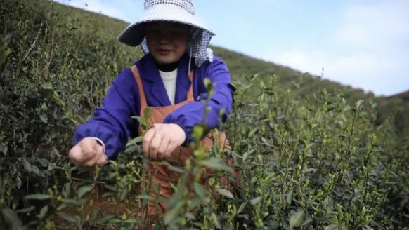村民彭萍分享道,她在家照顾孩子的同时,利用早上送孩子上学后的时间来到茶园采茶,每天能挣到一百多块钱,既方便又实惠。