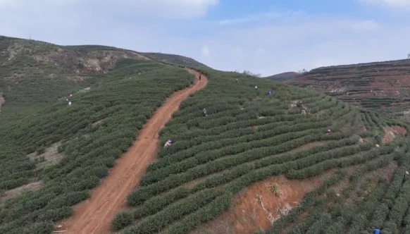 在茶园中,村民们斜挂竹篓,忙碌地采摘着春茶。他们的手法熟练而迅速,茶叶在他们的手中翻腾起舞,纵身跃入茶篓。空气中弥漫着淡淡的茶香,与花香、土香交织在一起,构成了一幅美丽的乡村画卷。