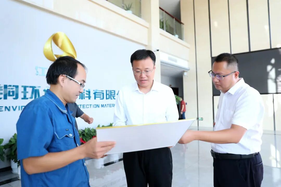 盛炜一行先后来到博莱产业园、狮子智慧物流园、江西万铜环保材料有限公司、江西昂达新材料有限公司、江霖环保新材料有限公司、江西融溢设备制造有限公司等地,实地查看项目建设进度,听取相关情况汇报。