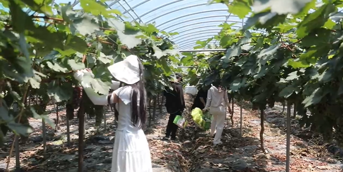 “平常上班忙,今天和闺蜜来摘葡萄,这里不仅空气清新,葡萄也很清甜。”游客张玲说。
