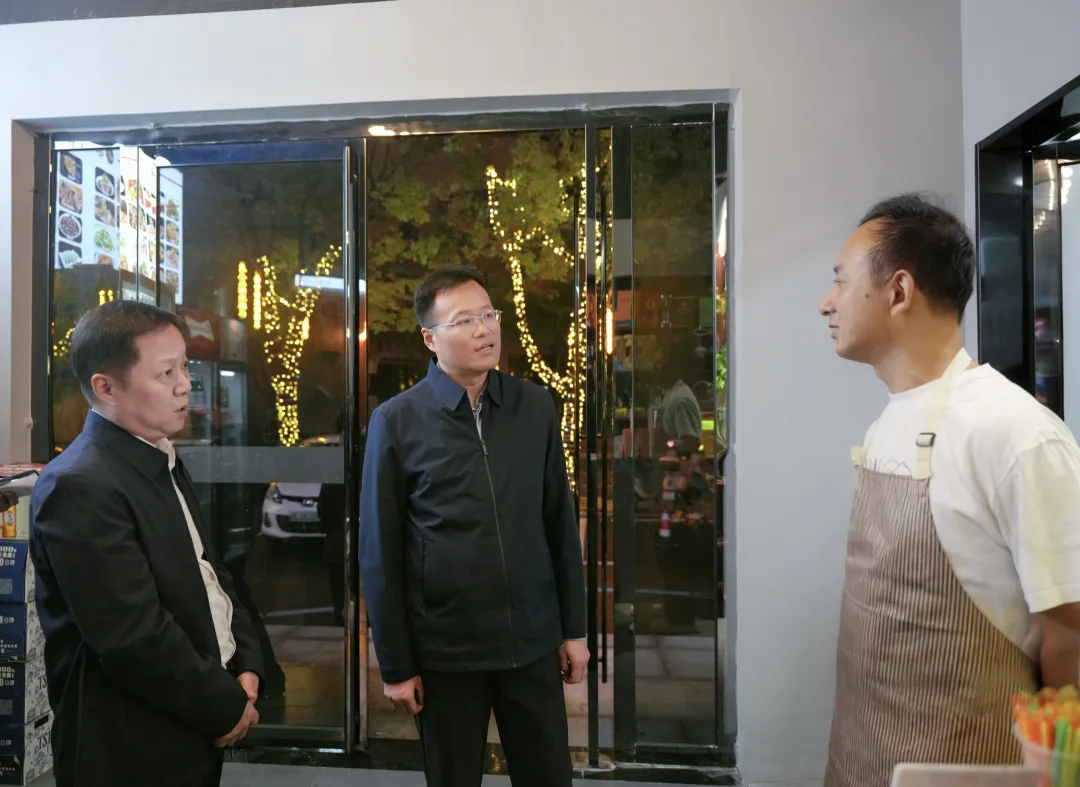 盛炜、潘光一行先后来到灼马电竞生活馆、爱乐传媒、柴味烤鱼、好一家活鱼馆、江洲投资·海客来全球购等地,实地查看并详细了解安全生产责任落实和生态环保等工作开展情况。