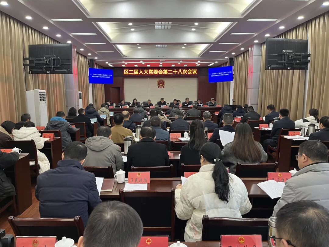 12月26日,区二届人大常委会第二十八次会议召开,区人大常委会主任喻浩源主持会议并讲话,区人大常委会副主任朱天华、张珏、张颖、胡林森、陈尚华、梁锋出席会议。区委常委、组织部部长杜方乔,区委常委、区纪委书记、区监委代理主任张家安,区委常委、常务副区长兰志春,区人民检察院检察长陈静列席会议。