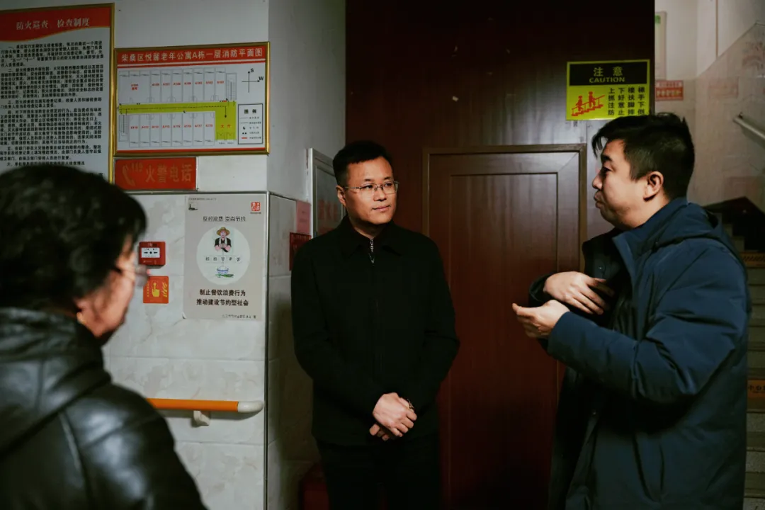 在悦馨老年公寓和江洲华府小区,盛炜检查了冬季用火用电用气安全、消防设施配备、应急值守制度落实等情况。他指出,冬季是用火用电高峰期,加上受寒潮天气影响,安全风险隐患叠加。他要求,老年公寓要落实24小时值班和夜间巡查制度,完善应急疏散预案,针对性开展消防演练,切实保障老年群体生命安全;小区物业要压实服务管理责任,及时清理楼道杂物、畅通消防通道,加强安全宣传引导,提升居民安全防范意识,全力确保人民群众度过一个平安祥和的新春佳节。