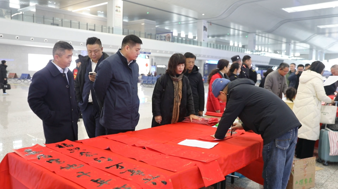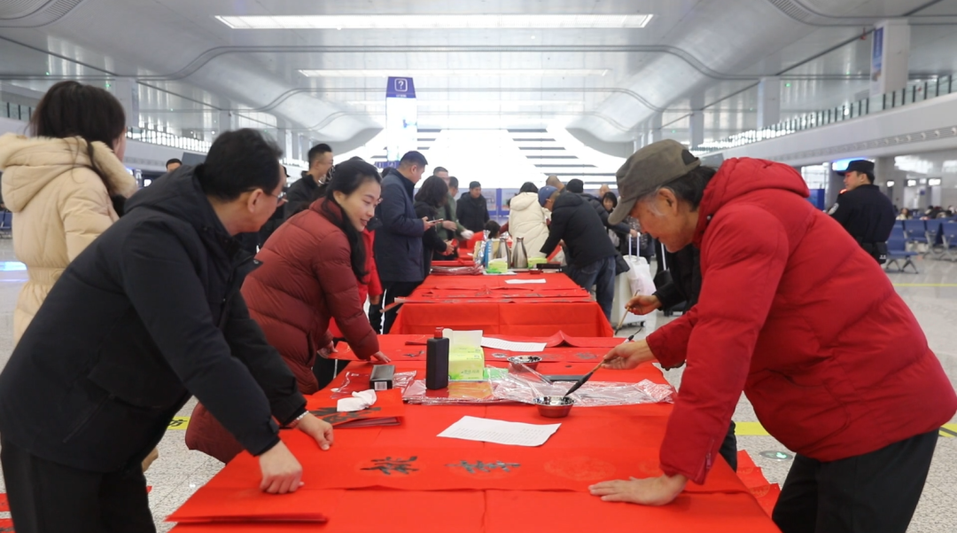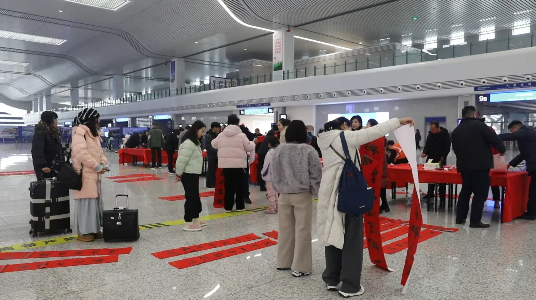 游客殷铖婧说:“在候车的时候能收到手写的春联,特别有年味,也特别暖心。字写得非常好,寓意也好,带着这份祝福回家过年,感觉旅途都变得格外温馨。”