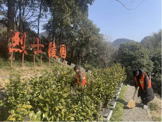 1月29日清晨,天色微亮,岷山乡志愿者们便陆续来到烈士陵园,投入到清扫工作中。大家分工明确、配合默契,清扫落叶杂物、擦拭墓碑、冲洗纪念碑基座、修剪绿植枝叶,各项工作有条不紊地进行。