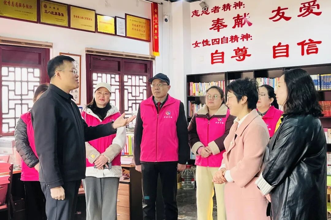在九江市柴桑区巾帼志愿服务联合会,盛炜详细了解联合会的发展历程、志愿服务开展情况及取得的荣誉成果。该联合会成立于2017年,由400余名各行各业热心公益女性组成,8年来持续开展服务妇女儿童、建设文明家庭、扶贫济困、应急救援等多元化志愿服务,先后荣获第七届全国文明单位、江西省三八红旗集体等荣誉称号。盛炜与志愿者代表亲切交流,对她们长期以来的无私奉献表示衷心感谢。他说,广大巾帼志愿者弘扬“奉献、友爱、互助、进步”的志愿精神,用爱心传递温暖,用行动诠释担当,在帮扶困境妇女儿童、参与基层社会治理等方面作出了积极贡献,充分展现了新时代女性的风采与力量。希望大家继续发挥示范引领作用,带动更多妇女投身志愿服务事业,为建设和谐友爱文明社会贡献更多巾帼力量。