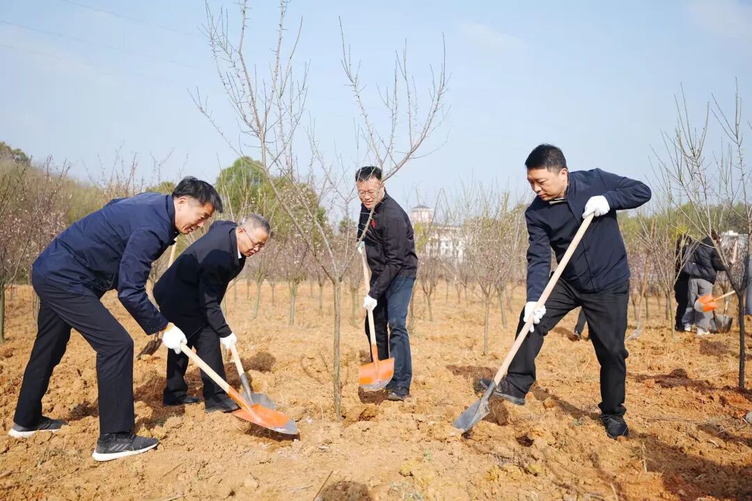 植树现场,盛炜、程剑等区领导与干部群众一起挥锹铲土、扶树植苗、培实新土、浇水灌溉,有条不紊地完成每一道工序,呈现一派热火朝天的劳动景象。经过一番劳作,一株株新栽的树苗迎风挺立,为柴桑大地增添了一抹新绿,焕发出盎然生机。