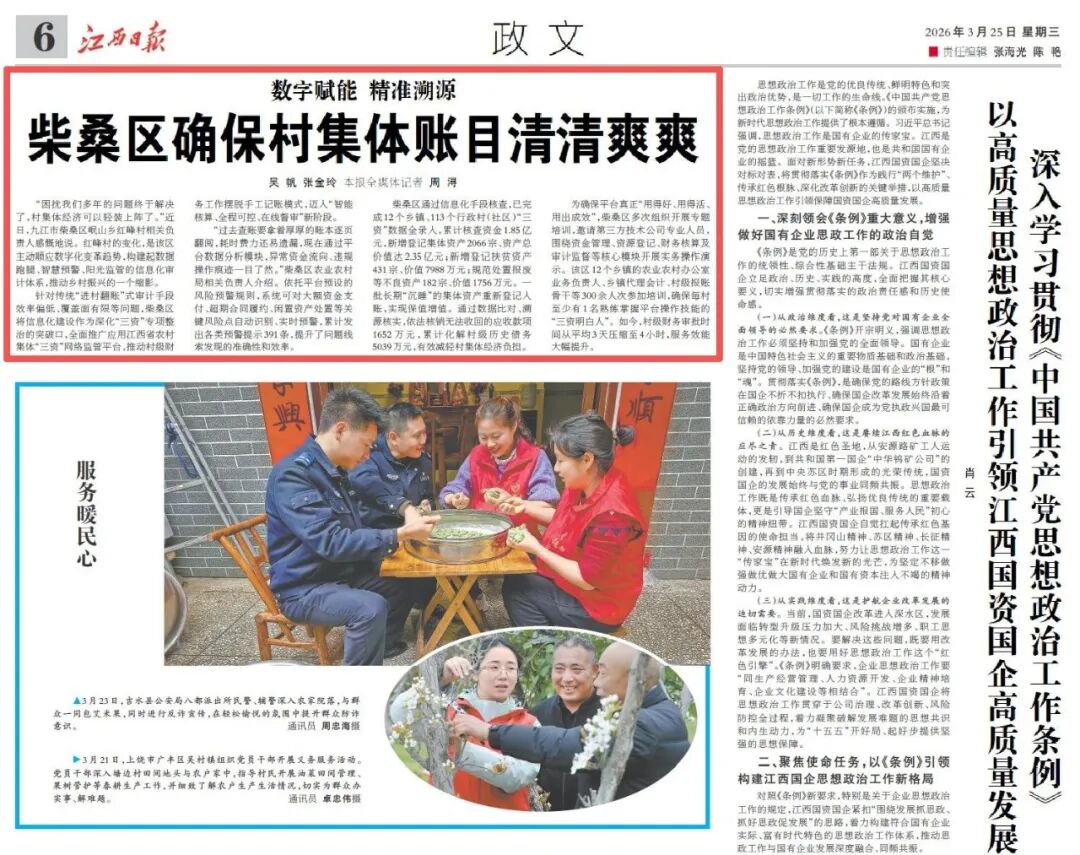 《江西日报》报道!柴桑区确保村集体账目清清爽爽