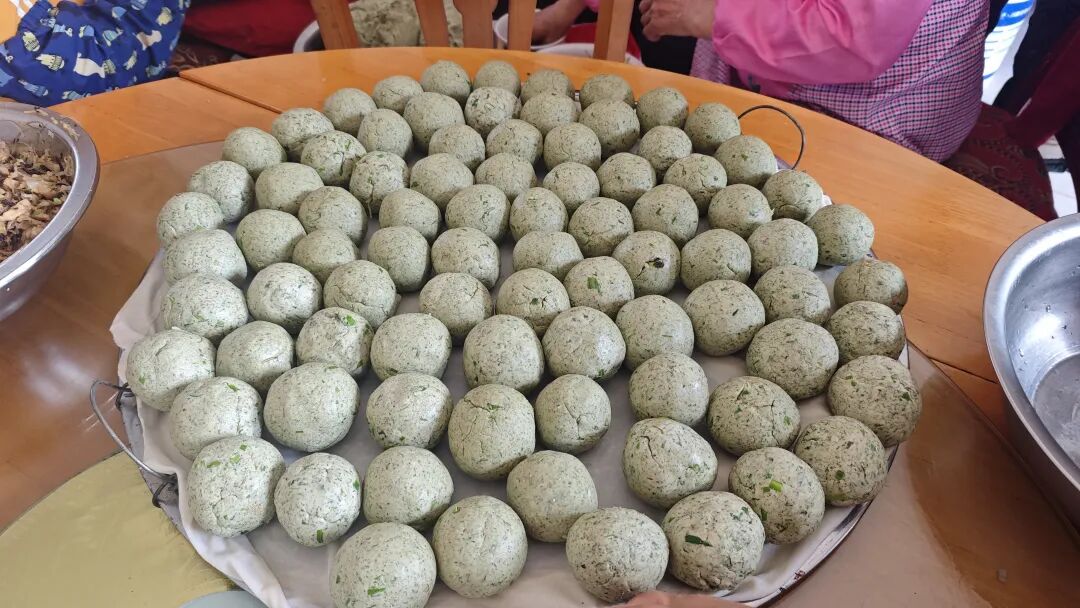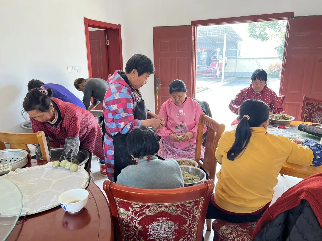 与此同时,城门街道金兰村里弥漫着淡淡蒿香,村民们齐聚一堂,忙着制作九江地区清明特有传统美食——蒿粑,以烟火气息迎接清明。大家分工有序、各司其职,揉面搓团、调制馅料,欢声笑语不断。不多时,碧绿饱满的蒿粑入笼蒸熟,清香四溢、软糯可口,藏着春天与家乡的暖意。