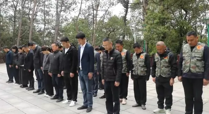 清扫完毕后,全体人员在革命烈士纪念塔前整齐列队,向英勇牺牲的革命烈士默哀,行三鞠躬礼,表达深切缅怀与崇高敬意。随后,大家依次缓步上前,向烈士敬献鲜花,驻足瞻仰烈士纪念碑,深切缅怀他们为国家和人民作出的不朽功绩。