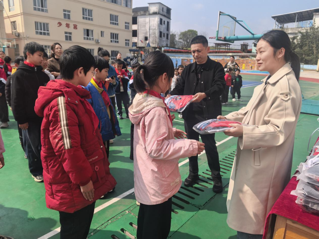 4月1日,一场温馨的校服捐赠仪式在柴桑区新合镇中心小学举行。祖籍柴桑区、在上海创业的爱心企业家张周象,向该校捐赠90套学生春秋装校服,总价值1.2万元,用实际行动表达对家乡教育事业的深切关怀。