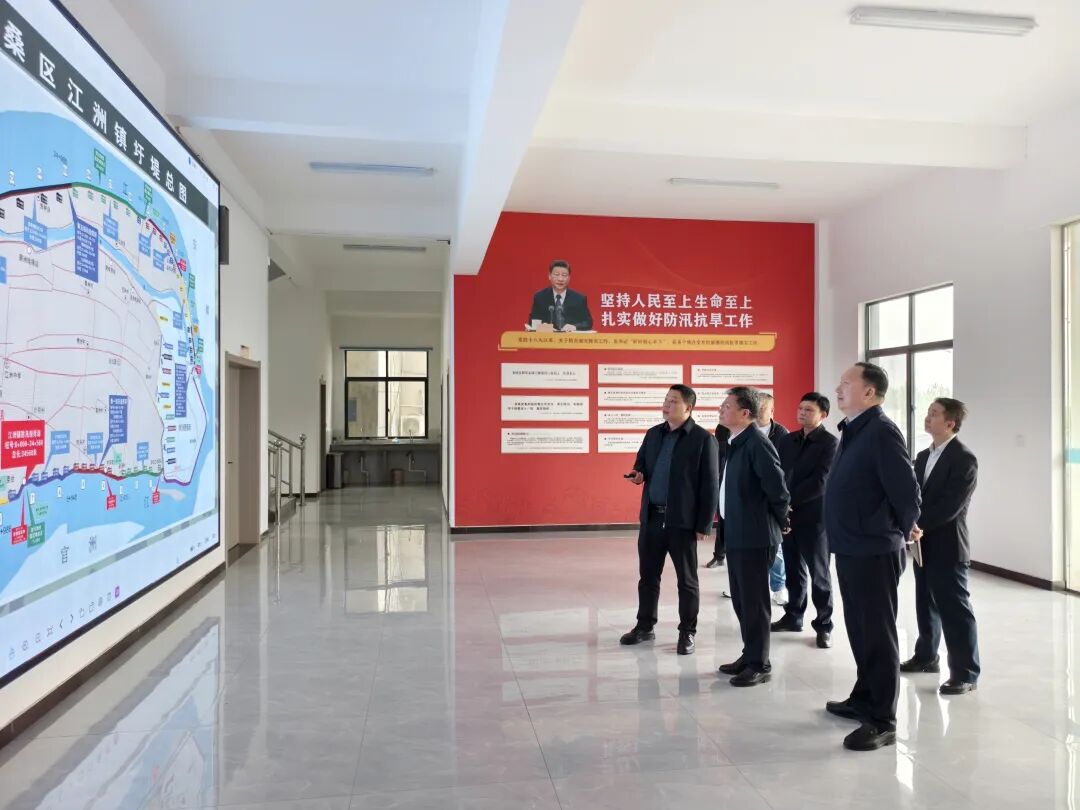 在江洲镇防汛仓库,王斌仔细查看江洲镇圩堤总图,与相关负责人深入交流,详细了解防汛备汛工作情况。他强调,要坚持人民至上、生命至上,立足防大汛、抗大洪、抢大险、救大灾,进一步完善应急预案,强化应急队伍建设和防汛物资储备,积极开展实战演练,扎实做好防汛备汛各项工作,确保安全度汛,切实守护好人民群众生命财产安全。