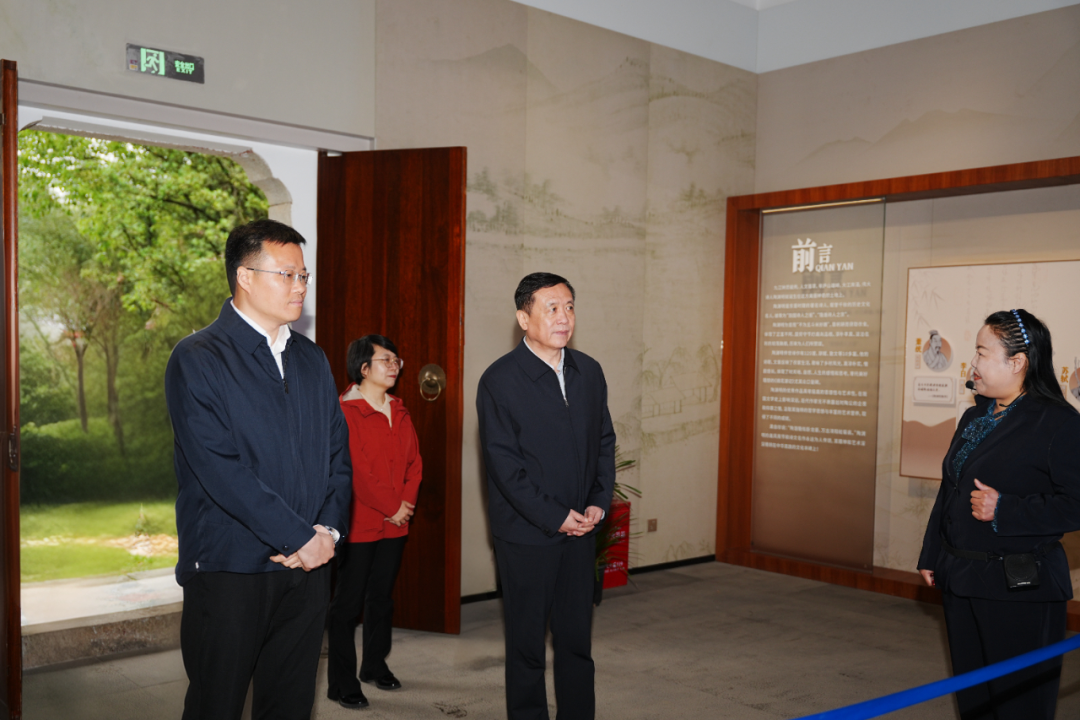 在陶渊明纪念馆,张宏森观看了有关陶渊明生平行踪的图表、照片、家谱以及历代陶学专著、名人书画等珍贵藏品,对我区在传承弘扬渊明文化方面所做的工作给予了充分肯定。他表示,陶渊明作为中国文学史上的重要人物,其高尚品格和文学成就对后世影响深远,要进一步挖掘渊明文化的时代价值,做好地方特色文化的创造性转化和创新性发展,让深厚的历史积淀成为滋养文学创作的不竭源泉。